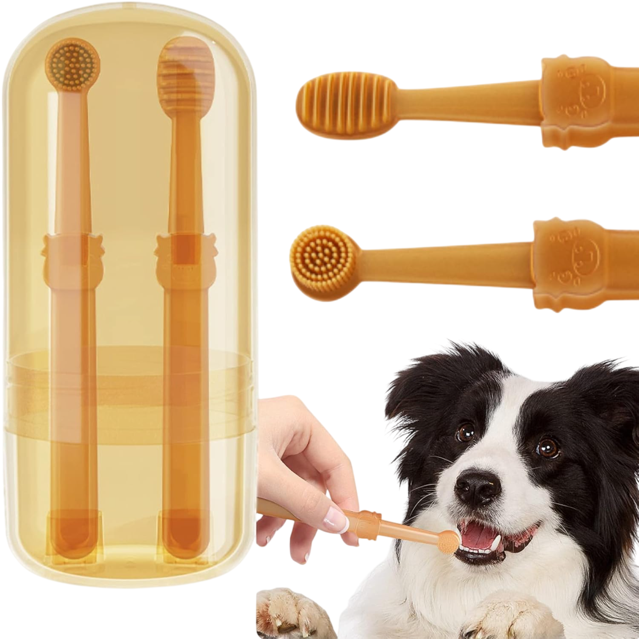 FOR DOGS: Toothbrush kit specially designed for dogs with sensitive gums, featuring soft silicone bristles to support gentle and effective daily oral care.